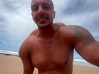 kinky girlfriend hints at sharing her huge cock boyfriend with best friend on the beach.