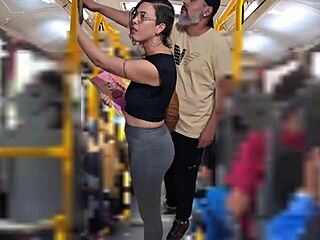 slutty student flashing on the bus gets a cumshot 10:05