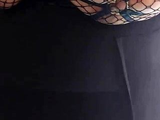 Horny Wife Flaunts Massive Tits in Fishnet Bra Tease