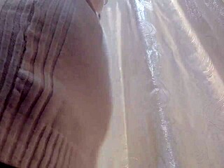 POV you SPY on a busty blonde trying sensual see-through lingerie in the dressing room. She teases while undressing in this amateur striptease with big tits exposed.