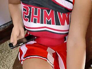 A cheerleader at home toys with her pussy until she reaches a powerful female orgasm.
