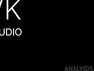 Holy Cow! Cute Curly Blonde Takes Hard Anal in All Holes with Creampie!