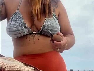 Hot latina mommy flashes on beach vacation
