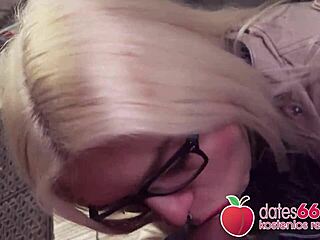 Curvy blonde nerdy girl mariella sun gets cumshot on glasses in public sex scene