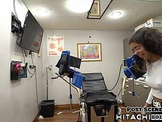 behind the scenes at dr tampa's clinic where bratty orphan cheerleader blaire celeste undergoes a physical exam with nurse in gloves and leggings
