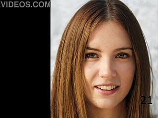 Bound Brunette Gags on Dildo in Hogtie Kneeling Torment