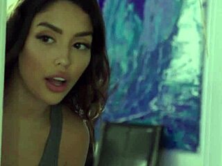 Watch this skinny Latina teen deepthroat and gag on a big cock in 69