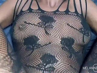 flexible latina milf stretches in see-through leggings