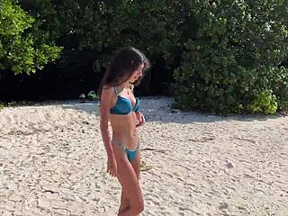 beautiful chubby milf pisses on beach with ripped clothes and hairy pussy