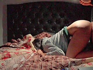 The horny Latina neighbor enters and sees her white neighbor masturbating with toys in bed