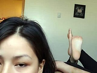 sexy goth babe's sensual oiled footjob fetish tease