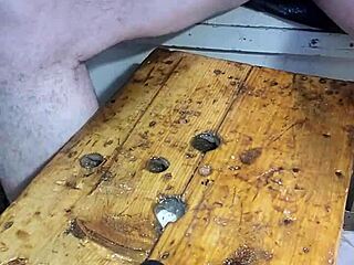brunette fucks huge zucchini anally on desk to intense orgasm