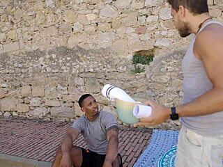 andy tells his friend how kourtney love's oiled big tits lead to interracial fun