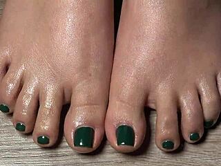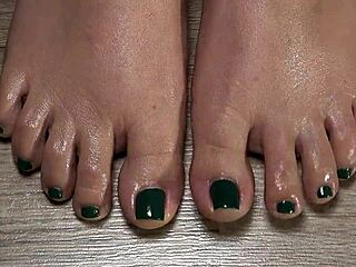 close up green nail toes for fetish fun