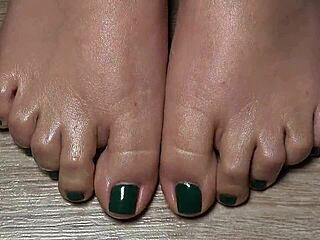 close up green nail toes for fetish fun
