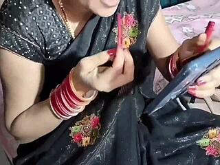 Indian bride pisses in black saree on ranch wedding night