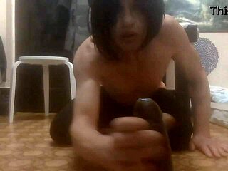yo, watch this big booty fem tranny ride that dildo hard!