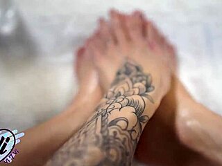 brunette teases with oiled feet fetish closeup 😍👣
