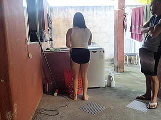 Horny Maid Moans on Erect Cock Workout Dirty Talk Petite Latina Bareback