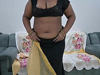 aunty lifts saree to flash her juicy tits