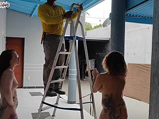 hey visitor come in naked as these hot bosses strip down ready for wild bisexual fun
