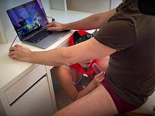 While playing VIDEO GAMES, this latina milf with blue eyes and big ass gives BLOWJOB and gets GAPED