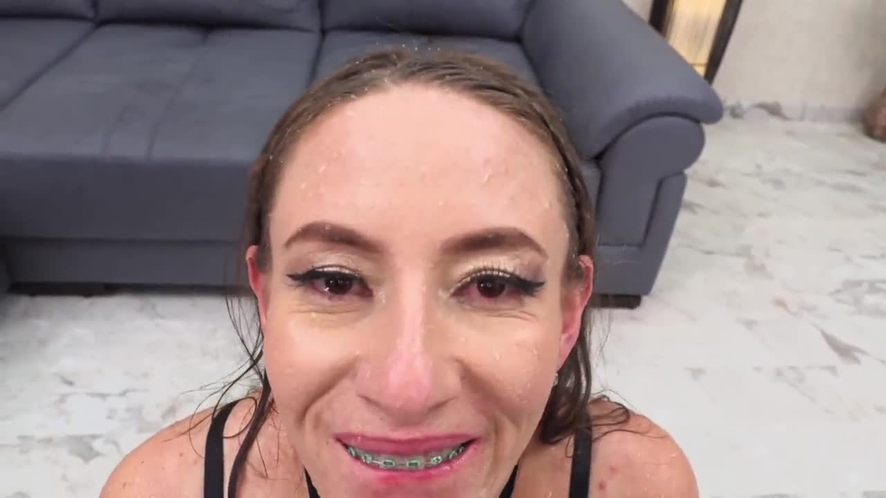 First Gangbang with Double Penetration and Cum Swallow