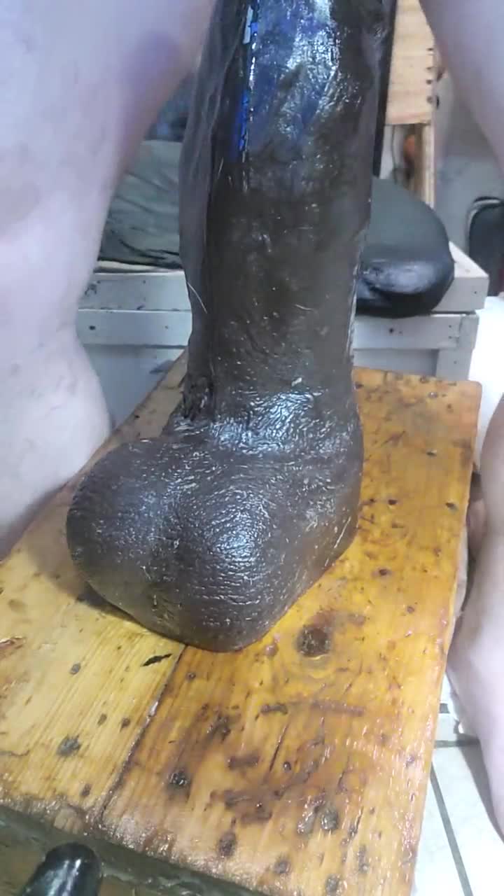 Тренирую жопу огромным черным дилдо растягиваю задницу широко интенсивно и жестко