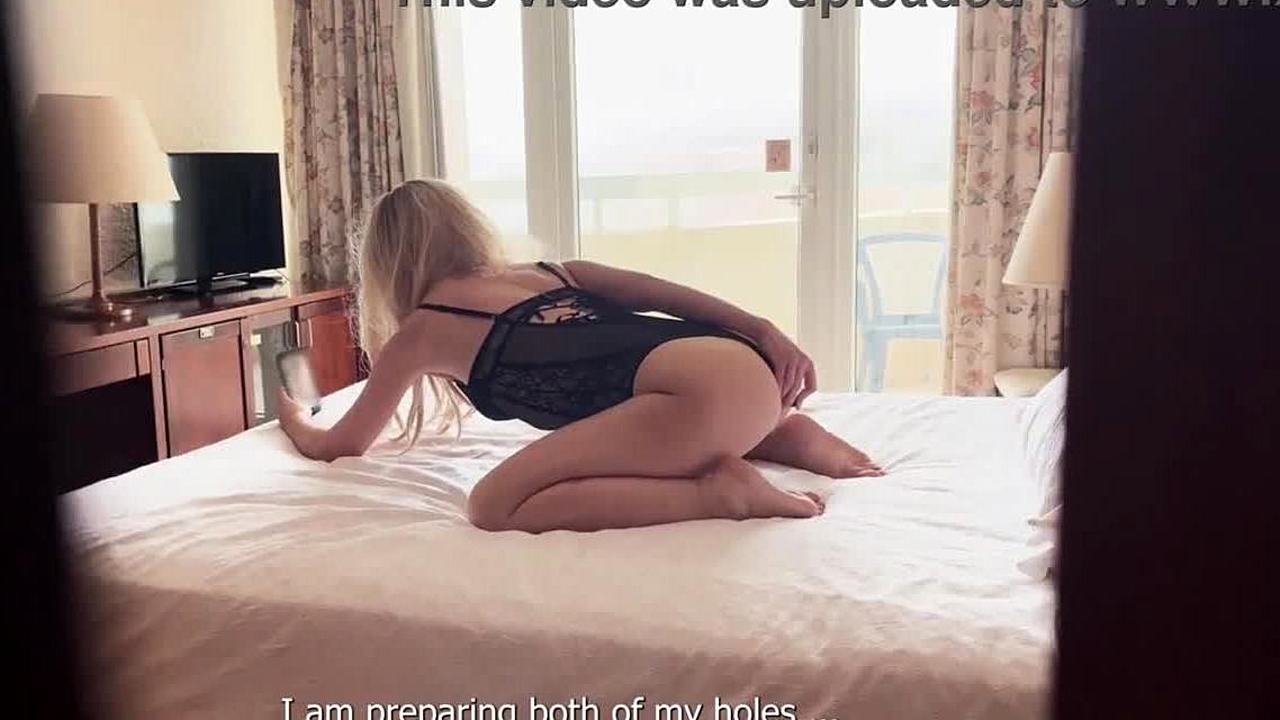 brunette slut in fishnets lingerie trains tight asshole for monster bwc gaping penetration spooning